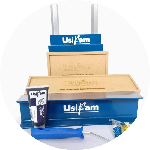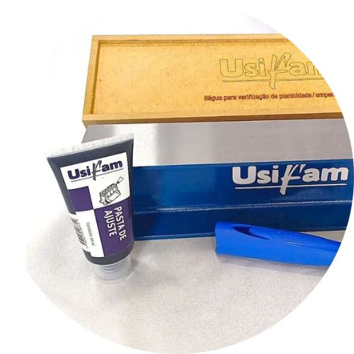 Kit Para Aferir Planicidade de blocos e cabeçotes de motores. - Medida 60 x 76 x 50 cm - Peso aproximado de 4,85 kg - Retificado 2 faces de trabalho - Aço carbono - Ótima rugosidade - Ótima precisão Dimensional - Pintura de alta resistência - Ótima planicidade O kit contém os itens: 1 (um) Régua de verificação de empenamento 1 (uma) Caixa de madeira para armazenamento 1 (um) Rolinho para passar pasta de desempeno na régua 1 (um) Pasta de Ajuste na Cor: azul 60g marca USIFAM - Uso profissional - Auxilia diagnóstico em mecânicas para verificação se o cabeçote e bloco estão empenados, se necessitam ou não de serem enviados para retífica. - Evita gastos desnecessários com serviço de retífica - Alta precisão e confiança dimensional - Original USIFAM Produto Original. O MELHOR CUSTO-BENEFÍCIO DO MERCADO!